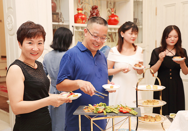 7月27日,2019綠之韻美學沙龍暨紅酒品鑒晚宴成功舉行。綠之韻集團董事長胡國安,國家高級整體形象管理師、國家高級禮儀培訓師、中國女性形象禮儀培訓師彩蝶,全國葡萄酒二級侍酒師黃文以及來自集團總部及各下屬機構的20余名員工參加活動。本次活動還特別邀請了2009 ICS中國青年廚藝大賽冠軍、Bocuse Asia-Pacific China 2012中國青年廚藝冠軍米其林三星大廚Mr. Sanglin Xie為晚宴主廚。