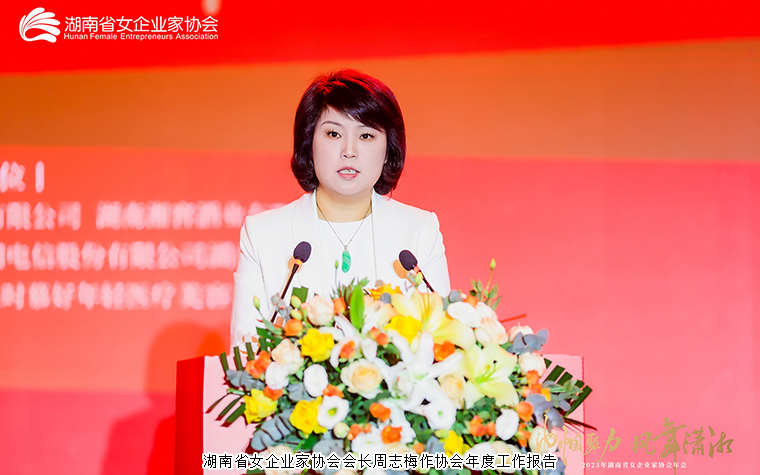 大會在莊嚴的主旋律中閃耀啟幕。回首2023年,湖南省女企業(yè)家協(xié)會周志梅會長分享了一年來協(xié)會的重點工作和各地州市的工作亮點,全面總結了協(xié)會 2023 年的工作成效同時對2024年度協(xié)會工作進行部署。汪萍書記總結匯報了協(xié)會一年來協(xié)會的黨建工作成果。勞嘉副會長就協(xié)會財務工作情況及相關財務工作規(guī)劃作報告。李娟監(jiān)事長作監(jiān)事會報告。湖南省婦聯(lián)黨組書記、主席黃芳在講話時肯定了湖南省女企業(yè)家協(xié)會的工作成效,并傳達全國婦女代表大會精神。她表示,省婦聯(lián)伴隨省女企協(xié)從成立至今,省女企協(xié)帶領女企業(yè)家們以巾幗不讓須眉的豪情,在經濟建設上施展才干,在社會公益里扶貧濟弱,為全省廣大女性樹立了榜樣,充分展示了新時代女性的風采,值得喝彩點贊。希望女企協(xié)繼續(xù)堅持政治引領把方向,堅持服務會員促發(fā)展,堅持規(guī)范管理強基礎,堅持提升素質促成長,帶領湖南女企業(yè)家們凝心聚力,踐行新思想中筑牢巾幗信仰之基,做敢于追夢奮斗者的新時代女性為在中國式現(xiàn)代化道路上聚力建設幸福湖南貢獻巾幗力量。
