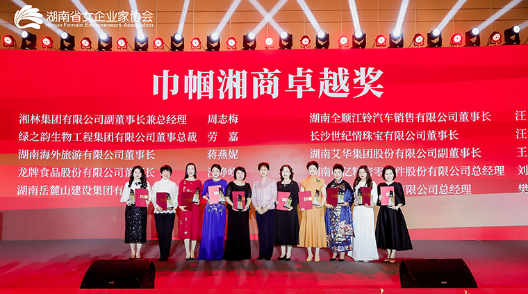 自湖南省女企業(yè)家協(xié)會成立以來,涌現(xiàn)出一大批優(yōu)秀的女性企業(yè)家,她們或大愛無私、或銳意創(chuàng)新、或積極奉獻。為發(fā)揚其精神品質,激勵會員單位承擔社會責任、合力辦會愛會,現(xiàn)場集中為獲得“巾幗湘商卓越獎”“巾幗湘商貢獻獎”“巾幗湘商創(chuàng)新獎“巾幗湘商奮斗獎”“巾幗湘商優(yōu)秀共產黨員”“巾幗湘商優(yōu)秀團體獎”的優(yōu)秀女企業(yè)家進行了表彰及頒獎。勞嘉總裁被授予“巾幗湘商卓越獎”榮譽稱號。