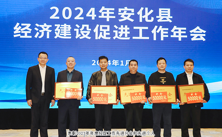 經(jīng)促聯(lián)誼,情系家鄉(xiāng),首先舉行的是2024年安化縣經(jīng)濟(jì)建設(shè)促進(jìn)工作年會。來自全國17個經(jīng)促分會相關(guān)負(fù)責(zé)人歡聚一堂,聚焦家鄉(xiāng),建言獻(xiàn)策。中共安化縣委書記石錄明出席會議并講話,縣委副書記、縣長潘文劍通報(bào)全縣經(jīng)濟(jì)社會發(fā)展情況,縣政協(xié)副主席、工商聯(lián)主席,縣經(jīng)促會常務(wù)理事長劉暢術(shù)通報(bào)全縣經(jīng)促工作情況,縣政協(xié)黨組書記、主席胡能華主持會議。會上,還表彰了2023年度經(jīng)促工作先進(jìn)分會和先進(jìn)個人。長沙市安化商會會長、綠之韻集團(tuán)董事長胡國安、華東分會理事長佘焱等先進(jìn)分會代表作優(yōu)秀分會經(jīng)驗(yàn)分享,積極暢談家鄉(xiāng)的發(fā)展變化,并圍繞招商引資、產(chǎn)業(yè)發(fā)展等方面積極建言獻(xiàn)策,現(xiàn)場氣氛熱烈活躍。