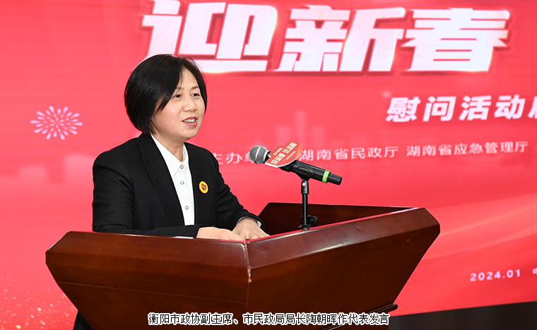 湖南省民政廳廳長黃東紅講話。她表示,春節(jié)將至,幫助困難群眾溫暖過冬、祥和過年是各級黨委政府的最大牽掛。湖南連續(xù)20年開展“迎新春 送溫暖”慰問活動,近5年累計籌集慈善款物20多億元,走訪慰問300多萬戶次。今年,省民政廳聯(lián)合省應(yīng)急管理廳、省糧食和物資儲備局、省慈善總會通過線下走訪、線上籌募等形式,統(tǒng)籌整合省市縣三級財政資金、社會捐贈款物近3.5億元,將在全省范圍內(nèi)走訪慰問53.6萬戶困難群眾,幫助他們溫暖過冬、快樂過年。希望全社會行動起來,共同奉獻愛心,共同關(guān)心困難群眾,共同推進民生升溫,一起為加快實現(xiàn)“三高四新”美好藍圖、建設(shè)現(xiàn)代化新湖南作出更大的貢獻!