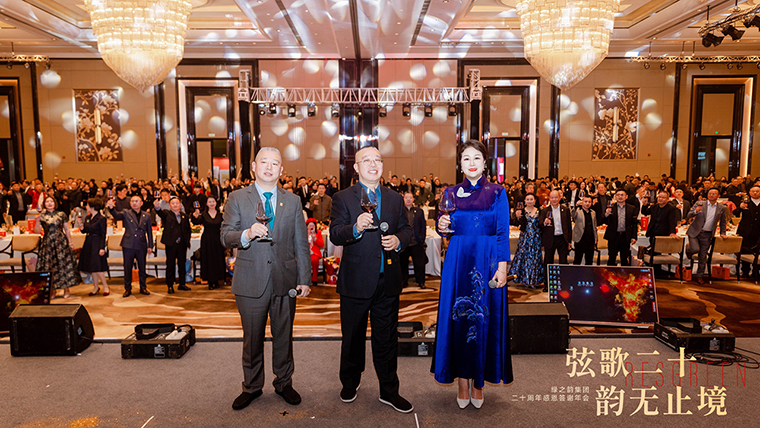 在全場(chǎng)最為熱烈的掌聲中,胡國(guó)安董事長(zhǎng)講話。感謝大家能夠來到綠之韻集團(tuán)20周年感恩答謝年會(huì)現(xiàn)場(chǎng),共同分享喜悅、見證美好。感謝國(guó)家和這個(gè)時(shí)代,祖國(guó)的改革開放,世界的交流融合,科技的日新月異,是綠之韻可以獲得長(zhǎng)足發(fā)展的根本原因。感謝綠之韻的員工和事業(yè)伙伴,從事業(yè)初創(chuàng)到穩(wěn)健發(fā)展,是一路走來的堅(jiān)守和共同成長(zhǎng),才有綠之韻現(xiàn)在的模樣。感謝父母,他們擁有著善良、樸實(shí)、誠(chéng)懇、大方、仁義、謙卑、互助等中華民族精神美德,我從我父母身上得以傳承,并在日后的事業(yè)中不斷轉(zhuǎn)化為我前行的動(dòng)力。企業(yè)小的時(shí)候是自己的,做到一定大的時(shí)候就是國(guó)家的、是社會(huì)的。二十年來,綠之韻積極承擔(dān)企業(yè)公民責(zé)任,捐建11所希望學(xué)校,踴躍參與了100多項(xiàng)社會(huì)公益項(xiàng)目,累計(jì)捐款捐物達(dá)8400多萬(wàn)元。剛剛,我參加了湖南省政府“迎新春送溫暖”活動(dòng),捐贈(zèng)100萬(wàn)元慰問困難群眾。今天在綠之韻集團(tuán)二十周年慶典的現(xiàn)場(chǎng),我們將再次向湖南省長(zhǎng)沙市光彩事業(yè)基金會(huì)捐贈(zèng)100萬(wàn)元,用于鄉(xiāng)村振興、幫扶濟(jì)困等光彩事業(yè)。二十及冠,大道其行。下一個(gè)20年,綠之韻將堅(jiān)持與祖國(guó)同行,與時(shí)代同行,持正念,行正道,得正果。在綠之韻二十周年之際,我們也有幸請(qǐng)到了中國(guó)著名詞曲家、音樂人、中國(guó)音樂家協(xié)會(huì)副主席何沐陽(yáng)先生特別創(chuàng)作了20周年紀(jì)念曲《愿世間所有的美好如約而至》。最后,借用這首旋律優(yōu)美、意境深遠(yuǎn)的歌曲,祝愿我們綠之韻20周年生日快樂,祝福現(xiàn)場(chǎng)的各位領(lǐng)導(dǎo)嘉賓、全體綠之韻人所有的美好如約而至、身體健康、闔家歡樂、龍年大吉!