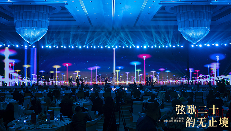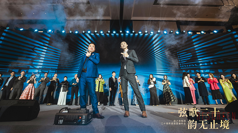 夜幕四合,繁華熱鬧的宴會(huì)現(xiàn)場(chǎng),燈火輝煌,霓虹搖曳、璀璨奪目?!跋腋瓒?韻無(wú)止境”——綠之韻集團(tuán)二十周年主題晚宴優(yōu)雅開啟。現(xiàn)場(chǎng)不僅有兼具視聽享受的大片、巧思創(chuàng)意的歌舞大秀,更有驚喜連連的抽獎(jiǎng)環(huán)節(jié)。歡聲笑語(yǔ)充斥著整個(gè)會(huì)場(chǎng),綠之韻人在觥籌交錯(cuò)中敞開心扉回首過往、展望未來,一幅幅其樂融融、談笑風(fēng)生的畫面匯聚成今夜最靚麗的美麗畫卷。
