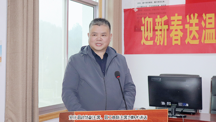 活動(dòng)最后,安化縣政協(xié)副主席、縣工商聯(lián)主席劉暢術(shù)講話。他首先代表縣委縣政府、縣工商聯(lián)向胡國(guó)安董事長(zhǎng)及團(tuán)隊(duì)表示崇高的敬意和衷心的感謝。他表示,胡國(guó)安董事長(zhǎng)作為從安化走出去的優(yōu)秀知名企業(yè)家代表,長(zhǎng)期以來情系家鄉(xiāng),從建橋修路,精準(zhǔn)扶貧到脫貧攻堅(jiān),從產(chǎn)業(yè)幫扶,愛心助學(xué)到鄉(xiāng)村振興,胡國(guó)安董事長(zhǎng)在愛心奉獻(xiàn)、回報(bào)桑梓的公益道路上一直不遺余力、竭盡所能,體現(xiàn)了一位企業(yè)家高度的社會(huì)責(zé)任感和使命感。當(dāng)前,安化縣各級(jí)部門到地方都在開展“迎新春 送溫暖”慰問活動(dòng),為困難群眾送上黨和政府的親切關(guān)懷,并致以新春的誠摯問候和美好祝愿。未來,安化縣工商聯(lián)也會(huì)充分發(fā)揮好聯(lián)絡(luò)橋梁的作用,積極動(dòng)員和帶領(lǐng)愛心企業(yè)開展好新春慰問系列活動(dòng),為保證人民群眾過個(gè)快樂祥和幸福年作出努力,不折不扣把各項(xiàng)政策執(zhí)行好、落實(shí)好,在思想上多關(guān)心、生活上多照顧、精神上多關(guān)懷,從精神到物質(zhì),盡可能地幫助有需要的鄉(xiāng)親們解決實(shí)際困難和問題。