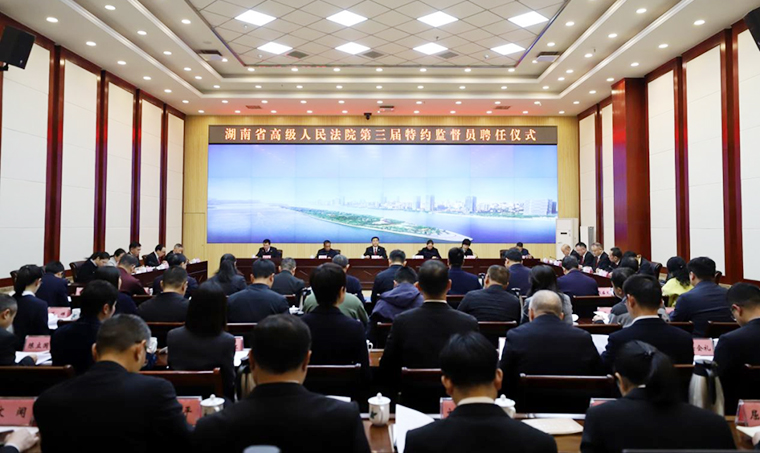 2024年3月21日,湖南省高級(jí)人民法院舉行第三屆特約監(jiān)督員聘任儀式。湖南省高級(jí)人民法院黨組書記、院長(zhǎng)朱玉出席會(huì)議并講話,為特約監(jiān)督員代表頒發(fā)聘書。湖南省高級(jí)人民法院黨組副書記、副院長(zhǎng)鄔文生主持會(huì)議。中共湖南省委統(tǒng)戰(zhàn)部副部長(zhǎng)廖建華出席會(huì)議并講話。中共湖南省委政法委二級(jí)巡視員羅壽初,省人大監(jiān)察和司法委員會(huì)副主任委員段成鋼,省政協(xié)社會(huì)和法制委員會(huì)駐會(huì)副主任楊天兵出席會(huì)議。湖南省高級(jí)人民法院黨組成員、政治部主任李知文宣讀聘任決定。湖南省政協(xié)委員、綠之韻集團(tuán)總裁勞嘉等40名同志被聘為湖南省高級(jí)人民法院第三屆特約監(jiān)督員。