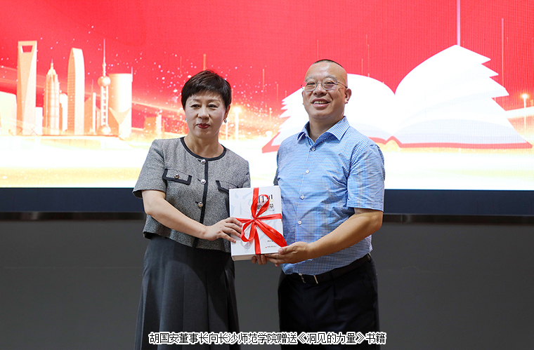 隨后,胡國(guó)安董事長(zhǎng)向長(zhǎng)沙師范學(xué)院贈(zèng)送《洞見的力量》書籍,校方代表接收贈(zèng)書并向胡國(guó)安先生頒發(fā)證書。講座結(jié)束后,胡國(guó)安董事長(zhǎng)現(xiàn)場(chǎng)向師范學(xué)院的學(xué)子們簽名贈(zèng)送了其著作《洞見的力量》,同學(xué)們興奮不已,紛紛要求與其合影留念,書籍的傳遞更象征著文化的傳承。