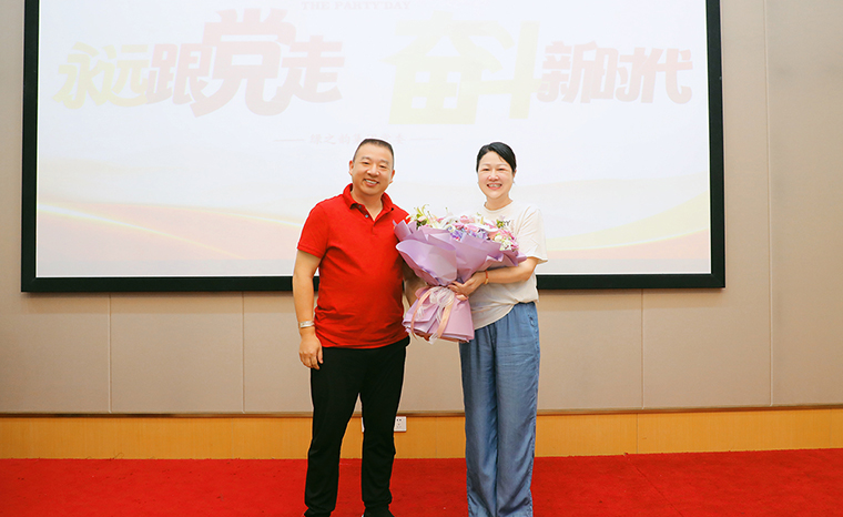 綠之韻集團(tuán)黨委委員、業(yè)務(wù)服務(wù)中心業(yè)務(wù)總經(jīng)理陳建新?lián)位顒?dòng)主持。活動(dòng)伊始,與會(huì)黨員通過主題視頻學(xué)習(xí)建黨節(jié)由來,溫習(xí)黨性知識(shí),共同回顧中國共產(chǎn)黨波瀾壯闊103載的奮斗歷程。會(huì)上,綠之韻集團(tuán)黨委委員楊丹作上半年黨委各支部活動(dòng)開展情況匯報(bào)及下半年黨委工作安排。隨后,大會(huì)舉行新黨員宣誓儀式。黨員代表梁淑琳、羅永帥作分享,綠之韻集團(tuán)第二黨支部書記陳建新、保健日用品黨支部書記楊丹分別為預(yù)備黨員羅瓊蕾、許長征佩戴黨徽、發(fā)放黨章。2024 年入黨積極分子代表李軍作分享發(fā)言?;顒?dòng)現(xiàn)場(chǎng),綠之韻集團(tuán)黨委為所有在司黨員發(fā)放政治生日賀卡,合唱《沒有共產(chǎn)黨就沒有新中國》,共同慶賀黨的生日,現(xiàn)場(chǎng)一片濃厚的愛國愛黨氛圍。