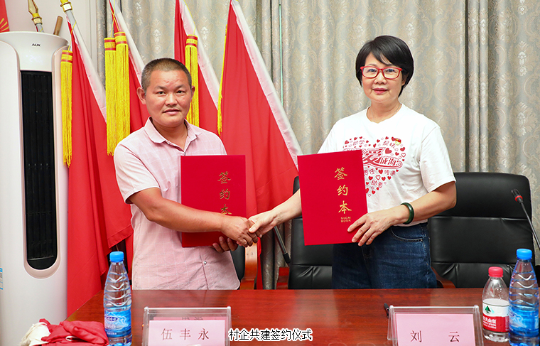 在分別介紹了老屋溪村委和綠之韻集團(tuán)黨委黨組織建設(shè)情況后,老屋溪村村支部書記伍豐永和綠之韻集團(tuán)黨委書記劉云現(xiàn)場(chǎng)簽訂村企共建協(xié)議。此次黨組織共建活動(dòng),將充分發(fā)揮結(jié)對(duì)雙方黨組織的自身優(yōu)勢(shì),共同學(xué)習(xí)貫徹落實(shí)黨的二十大精神,增強(qiáng)黨組織服務(wù)群眾功能,形成村企共建責(zé)任共同體,努力構(gòu)建“組織共建、資源共享、優(yōu)勢(shì)互補(bǔ)、互相促進(jìn)、共同提高”的黨建工作新格局,以黨建統(tǒng)籌引領(lǐng)鄉(xiāng)村振興工作進(jìn)一步發(fā)展。