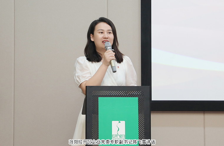 活動最后,瀏陽經(jīng)開區(qū)企業(yè)黨委專職副書記陳飛雪講話。她首先感謝了瀏陽經(jīng)開區(qū)非公黨建第一片區(qū)對園區(qū)非公黨建工作的支持。今天是9.30烈士紀(jì)念日,她向大家分享了自己的曾祖父作為一名烈士英勇犧牲的故事,說到動情之處,聲音哽咽。隨后,她提出了三點要求:一是家國情懷需要弘揚傳承。家國情懷在增強民族凝聚力、建設(shè)幸福家庭、提高公民意識等方面都有重要的時代價值。家國情懷的核心是愛黨、愛國,是非公企業(yè)需要大力倡導(dǎo)的,是基層黨組織需要大力弘揚的。藍思科技、綠之韻、東風(fēng)藥業(yè)等園區(qū)優(yōu)秀企業(yè)堅持抓黨建促發(fā)展不動搖,注重厚植黨員群眾的家國情懷,實現(xiàn)了黨建強、發(fā)展強的目標(biāo)。二是企業(yè)文化需要貼近員工。企業(yè)厚植家國情懷的一個重要抓手就是企業(yè)文化欣欣向榮,文體活動豐富多彩,就是接地氣、有底氣、聚人氣、冒熱氣。三是片區(qū)活動需要常抓常新。隨著瀏陽經(jīng)開區(qū)非公企業(yè)黨組織的不斷增加,各個片區(qū)黨組織一起策劃活動,一起聯(lián)誼交流,一起進步提升,取得了非常好的效果。她希望,第一片區(qū)的黨建活動越來越精彩紛呈,越來越活力奮發(fā),用實際行動為奮力譜寫瀏陽經(jīng)開區(qū)非公黨建高質(zhì)量發(fā)展的新篇章貢獻力量。