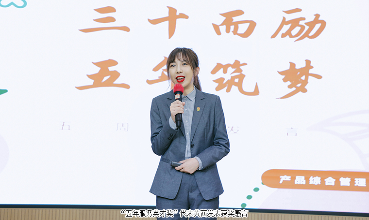 為表彰先進(jìn)、樹立榜樣、激勵(lì)奮進(jìn),大會(huì)對(duì)2024年度“五年服務(wù)英才獎(jiǎng)”、“十年服務(wù)忠誠(chéng)獎(jiǎng)”、“二十年服務(wù)功勛獎(jiǎng)”進(jìn)行了表彰,鼓勵(lì)全體員工以優(yōu)秀為標(biāo)桿,勇于追求卓越,在工作中實(shí)現(xiàn)個(gè)人價(jià)值與奮斗目標(biāo)。勞嘉總裁、胡均安常務(wù)副總裁依次為獲獎(jiǎng)優(yōu)秀個(gè)人頒發(fā)榮譽(yù)獎(jiǎng)杯和證書。獲獎(jiǎng)代表王壯、黃茜發(fā)表獲獎(jiǎng)感言,分享了他(她)們加入綠之韻的成長(zhǎng)歷程,并表達(dá)了將始終保持積極進(jìn)取的態(tài)度,珍惜榮譽(yù)、奮勇有為、不斷提升的決心。