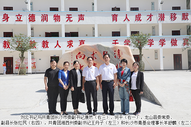 2019年5月21-23日,希望工程·走進(jìn)湘西——長(zhǎng)沙共青團(tuán)“精準(zhǔn)助扶貧·龍山公益行”活動(dòng)在龍山縣苗兒灘鎮(zhèn)九年制學(xué)校舉行。共青團(tuán)長(zhǎng)沙市委副書(shū)記康然、何平,長(zhǎng)沙市直機(jī)關(guān)工委委員、宣傳部長(zhǎng)陳國(guó)勝,共青團(tuán)湘西州委副書(shū)記王丹子,中共龍山縣委常委、縣人民政府副縣長(zhǎng)張紅民,長(zhǎng)沙市青基會(huì)羊舒麟等領(lǐng)導(dǎo)出席活動(dòng)。綠之韻集團(tuán)黨委書(shū)記劉云及愛(ài)心企業(yè)、社會(huì)愛(ài)心人士、受助學(xué)生代表等1000余人參加本次活動(dòng)。