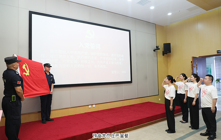 活動由綠之韻集團(tuán)黨委委員、業(yè)務(wù)服務(wù)中心業(yè)務(wù)總經(jīng)理陳建新主持。在莊嚴(yán)的黨旗下,預(yù)備黨員宣誓儀式率先舉行。支部書記們鄭重地為預(yù)備黨員佩戴上象征責(zé)任與使命的黨徽,鏗鏘有力的誓言響徹會場,彰顯了新生力量對黨的忠誠信仰。
