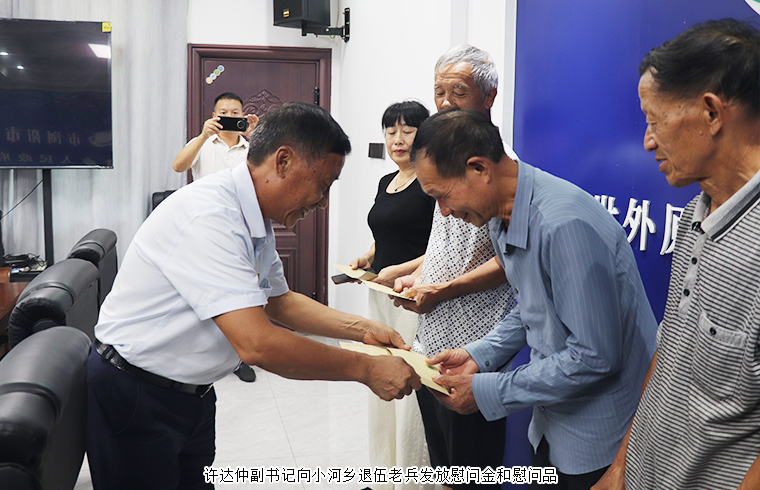 活動當天,綠之韻集團黨委一行首先抵達小河鄉(xiāng)政府。座談會上,多位曾為國防事業(yè)奉獻青春的老兵代表分享了他們的故事。其中,對越自衛(wèi)反擊戰(zhàn)老兵卜繼資的講述尤為令人動容。卜繼資同志當年服役于炮一師后勤部汽車連。他深情回憶道,在戰(zhàn)火紛飛的歲月里,他和戰(zhàn)友們駕駛汽車穿梭在險象環(huán)生的運輸線上,肩負著向前線運送彈藥、給養(yǎng)和傷員后撤的重任。他自豪地展示了一枚珍藏的三等功軍功章,這枚勛章記錄了他和戰(zhàn)友們在一次緊急運輸任務中,冒著猛烈炮火,克服重重困難,確保關鍵物資準時送達前線的英勇事跡。他說:“那時候只有一個念頭,就是完成任務,保障前線打贏!我們后勤兵也是戰(zhàn)士,方向盤就是我們的武器?!崩媳闹v述,生動再現(xiàn)了后勤戰(zhàn)線官兵的默默奉獻與無畏犧牲,贏得了全場由衷的敬意。隨后,綠之韻集團黨委書記劉云、副書記許達仲代表集團黨委向在場的退伍老兵們致以節(jié)日的誠摯問候和崇高敬意,并送上慰問金和慰問品。