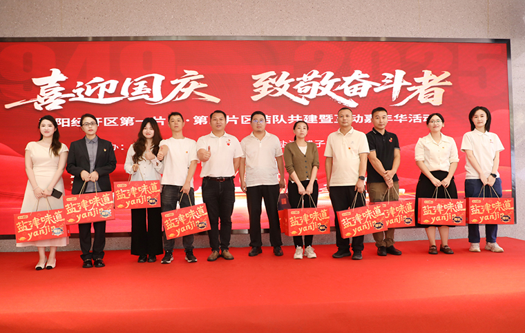 紅旗漫卷山河壯,七十六載譜華章。為慶賀中華人民共和國成立76周年,近日,由瀏陽經(jīng)開區(qū)第一片區(qū)、第三片區(qū)聯(lián)合主辦,綠之韻集團(tuán)第二黨支部與鹽津鋪?zhàn)拥谝稽h支部共同承辦的“喜迎國慶·致敬奮斗者”結(jié)對(duì)共建暨互動(dòng)嘉年活動(dòng)舉行。瀏陽經(jīng)開區(qū)企業(yè)黨委專職副書記陳飛雪,企業(yè)黨委委員、黨管科科長(zhǎng)胡佳樂;綠之韻集團(tuán)黨委書記劉云,黨委副書記許達(dá)仲,業(yè)務(wù)服務(wù)中心業(yè)務(wù)總經(jīng)理、第二黨支部書記陳建新;鹽津鋪?zhàn)狱h委副書記湯云峰等領(lǐng)導(dǎo)出席,片區(qū)百余名企業(yè)黨員職工代表齊聚一堂,以奮斗者之名共賀華誕。