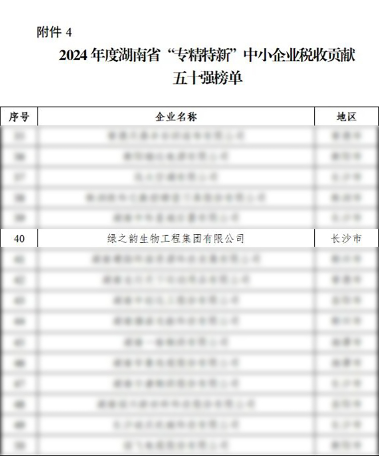 近日,湖南省財政廳公示了2024年度“湖南省企業(yè)稅收貢獻百強”“湖南省民營企業(yè)稅收貢獻百強”“湖南省高新技術(shù)企業(yè)稅收貢獻百強”“湖南省‘專精特新’中小企業(yè)稅收貢獻五十強”四張榜單。綠之韻集團憑借穩(wěn)健的經(jīng)營業(yè)績、持續(xù)的技術(shù)創(chuàng)新與突出的稅收貢獻,成功入選榜單。這一榮譽不僅是對綠之韻集團稅收貢獻的充分肯定,更彰顯了企業(yè)在推動區(qū)域經(jīng)濟發(fā)展、履行社會責任方面的卓越擔當。