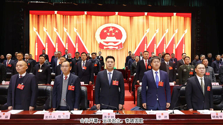12月20日上午8點30分,大會在雄壯的國歌聲中開幕。大會由安化縣人大常委會主任陳飛燕主持。本次大會的執(zhí)行主席是陳飛燕,(以下按姓氏筆畫為序)王定巖、龍要平、盧映云、劉斌、劉百戰(zhàn)、劉建輝、李益、李志生、李艷云、羅偉民、胡能華、胡能新、夏瓊玲、郭劍鋒、潘文劍。安化縣領導李進、李德輝、謝可贊、廖小甫、郭環(huán)球、楊正華、楊頎斌、陳曉明等在主席臺就座。老領導蔣金云、蔣躍登、伍湘安在主席臺就座。大會應到代表330人,實到299人,因事因病請假31人,符合法定人數(shù)。安化縣人大代表、益陽市工商聯(lián)(總商會)副會長、綠之韻集團常務副總裁胡均安參加大會。