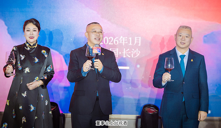 在溫馨而熱烈的氛圍中,在全場(chǎng)所有嘉賓的共同見證下,胡國(guó)安董事長(zhǎng)、勞嘉總裁、胡均安常務(wù)副總裁上臺(tái)舉杯祝酒,為所有嘉賓、事業(yè)伙伴和家人們送上誠(chéng)摯的祝福。胡國(guó)安董事長(zhǎng)在講話中說道,“每一次與大家的相聚,都是我心中最珍貴的時(shí)刻?!彼Y(jié)合此次參加長(zhǎng)沙市“兩會(huì)”的所見所感,分享了長(zhǎng)沙市與安化縣在制定“十五五規(guī)劃”過程中,廣納群言、匯聚眾智的科學(xué)精神與民主實(shí)踐。他表示,今年正值綠之韻集團(tuán)實(shí)施“第五個(gè)五年規(guī)劃”的關(guān)鍵之年,各市場(chǎng)團(tuán)隊(duì)緊緊圍繞集團(tuán)戰(zhàn)略部署,制定了清晰務(wù)實(shí)的發(fā)展路徑,與集團(tuán)前進(jìn)的腳步同頻共振、協(xié)力共進(jìn)。今天,綠之韻取得的每一份成績(jī),都凝聚著在座每一位戰(zhàn)略伙伴的智慧與汗水。正是大家堅(jiān)守市場(chǎng)一線,用心講述綠之韻的品牌故事、全力推廣優(yōu)質(zhì)產(chǎn)品、積極傳遞企業(yè)文化,才讓綠之韻的事業(yè)始終生機(jī)盎然、脈搏強(qiáng)勁。胡國(guó)安董事長(zhǎng)再次向所有奮戰(zhàn)在全球各地市場(chǎng)一線的綠之韻家人致以誠(chéng)摯的謝意,并鄭重表示:“未來,我將更加珍惜每一次與大家相見、相伴、同行的時(shí)光。”最后,他以酒寄情,舉起酒杯說道:“酒,雖不是表達(dá)敬意的唯一方式,但杯中承載的是我對(duì)大家最深沉的尊敬與熱愛。讓我們舉杯,為2026,為再相聚,為綠之韻更加輝煌的明天干杯!”