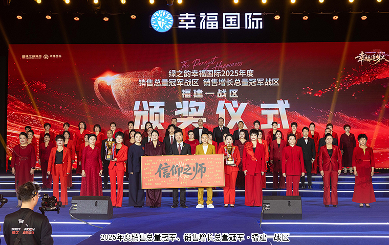 信念如磐,行動如鋒。福建一戰(zhàn)區(qū)憑借著堅定的信仰與卓越的執(zhí)行,在激烈的競爭中脫穎而出,一舉斬獲“2025年度銷售總量冠軍戰(zhàn)區(qū)”與“2025年度銷售增長總量冠軍戰(zhàn)區(qū)”雙項殊榮,被市場譽為“信仰之師”。綠之韻集團總裁勞嘉,運營總裁、幸福導師夏運良將鐫刻著46位市場領袖手寫簽名的榮耀牌匾授予這支“信仰之師”。幸福代言人黃圣凱分享獲獎感言。