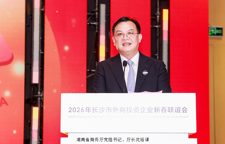 2月1日,“環(huán)球薈萃 逐夢星城”2026年長沙市外商投資企業(yè)新春聯誼會在長沙舉行。湖南省商務廳黨組書記、廳長沈裕謀,長沙市人民政府黨組成員、副市長鄭平,長沙市政協副主席陳劍文等領導出席活動。長沙市商務局黨組書記、局長吳照舒主持,省市相關部門、各區(qū)縣(市)、園區(qū)分管領導,商務部門負責人,與來自全球各地的外資企業(yè)代表、商會協會負責人共百余人歡聚一堂,共敘友誼、共謀發(fā)展。綠之韻集團黨委書記劉云率黨員代表參加活動,由瀏陽經開區(qū)選送的綠之韻集團編排歌舞節(jié)目《世界贈與我的》精彩亮相市級聯誼舞臺,以藝術形式展現了綠之韻積極投身區(qū)域發(fā)展建設的責任擔當與文化自信。