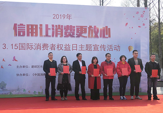 2019年3月14日,由南京市建鄴區(qū)市場監(jiān)管局、消費者協(xié)會等聯(lián)合主辦的3·15消費者日主題活動在莫愁湖南門口的和平廣場舉行。綠之韻集團江蘇分公司參加本次活動,分公司經(jīng)理趙軍現(xiàn)場簽署守信自律承諾書。綠之韻將繼續(xù)把提升產(chǎn)品質(zhì)量和維護消費者權(quán)益作為企業(yè)發(fā)展壯大的最大根本,努力為行業(yè)健康可持續(xù)發(fā)展貢獻力量。