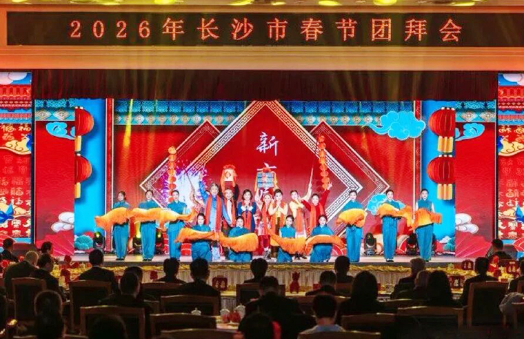 活動現(xiàn)場,與會嘉賓共同欣賞了精彩紛呈的文藝演出。湘劇《沁園春·長沙》由梅花獎得主曹汝龍、周帆傾情演繹,彰顯了湖湘文化的深厚底蘊;少兒花鼓戲串燒《戲韻童聲》活潑生動,展現(xiàn)了傳統(tǒng)戲曲的傳承活力;詩朗誦、舞蹈旗袍秀、花鼓戲選段及歌舞《燈火里的中國》等節(jié)目輪番上演,為團拜會增添了濃厚的文化氛圍和節(jié)日喜慶,生動詮釋了長沙作為歷史文化名城的藝術(shù)風采與時代精神。