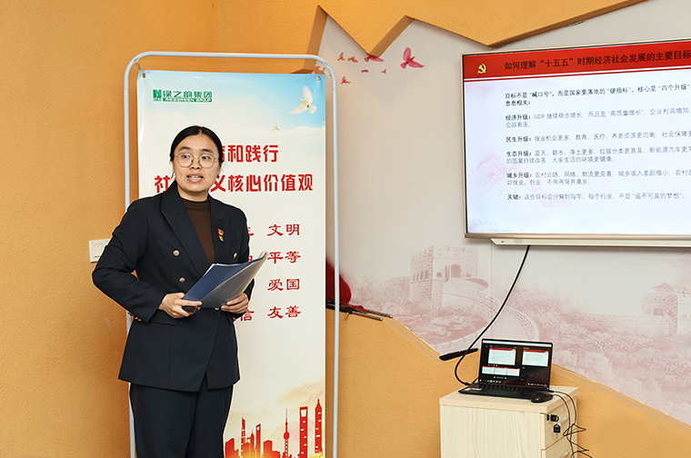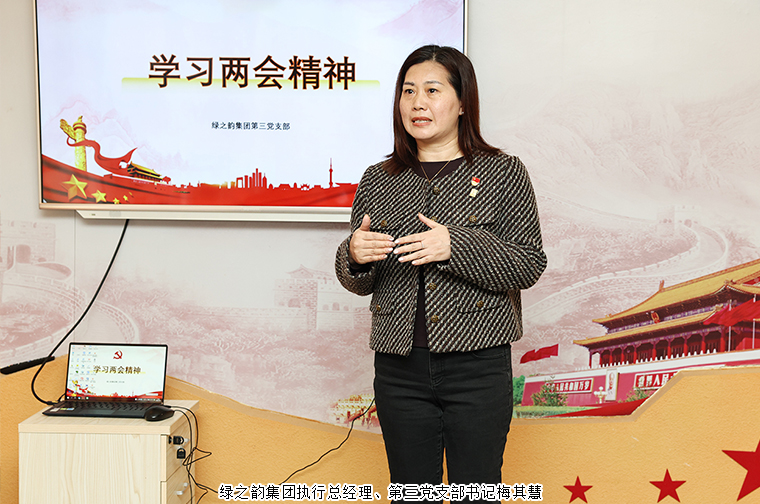 會(huì)上,綠之韻集團(tuán)執(zhí)行總經(jīng)理、第三黨支部書記梅其慧就學(xué)習(xí)內(nèi)容分享了心得體會(huì)。結(jié)合兩會(huì)精神,她表示在世界格局復(fù)雜多變的背景下,我們要珍惜來之不易的安定環(huán)境,以確定性應(yīng)對不確定性,在明確戰(zhàn)略方向的前提下,持續(xù)提升服務(wù)質(zhì)量與管理水平,推動(dòng)企業(yè)穩(wěn)健發(fā)展。她希望大家將每次學(xué)習(xí)成果真正融入日常工作,做到學(xué)以致用、知行合一。