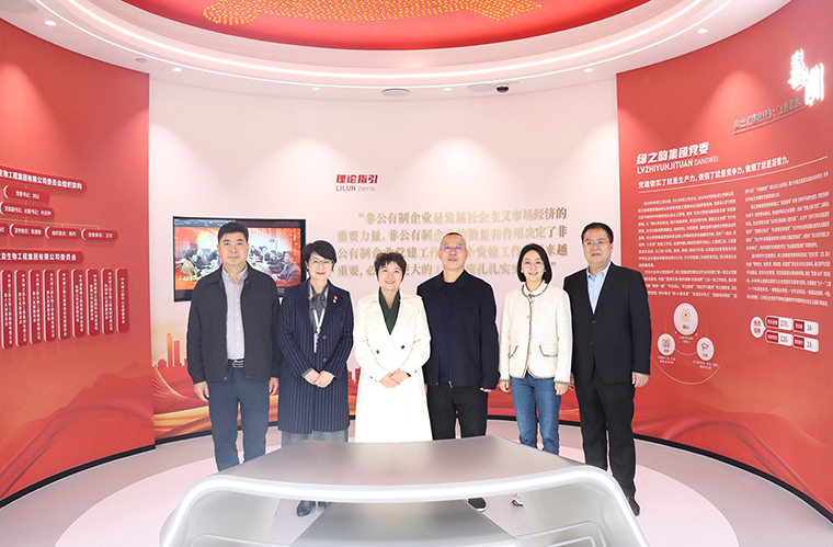 調(diào)研組一行循著企業(yè)發(fā)展脈絡(luò),先后參觀了綠之韻中心數(shù)智化科技展廳、黨建教育陣地、人大代表聯(lián)絡(luò)站及政協(xié)委員工作室等核心區(qū)域,進(jìn)行了全方位、深層次的實(shí)地考察。在數(shù)智化科技展廳內(nèi),“水之道” 設(shè)計(jì)理念將東方 “上善若水” 的哲學(xué)智慧與前沿?cái)?shù)字技術(shù)深度融合,通過沉浸式交互系統(tǒng),全面展現(xiàn)企業(yè)發(fā)展歷程、全鏈條產(chǎn)品體系、行業(yè)領(lǐng)先的科研成果,以及在公益助學(xué)、鄉(xiāng)村振興等領(lǐng)域的扎實(shí)實(shí)踐,立體呈現(xiàn)出企業(yè)的創(chuàng)新活力、產(chǎn)業(yè)實(shí)力與社會(huì)擔(dān)當(dāng)。在黨建教育陣地,劉云書記介紹了綠之韻自2006年成立黨支部以來,構(gòu)建的以黨組織為核心、工會(huì)與公益基金會(huì)協(xié)同聯(lián)動(dòng)的黨建工作新生態(tài),系統(tǒng)闡釋特色黨建工作體系,彰顯黨建與公司治理深度融合為企業(yè)發(fā)展注入的強(qiáng)勁紅色動(dòng)能。在政協(xié)委員工作室,胡國(guó)安董事長(zhǎng)重點(diǎn)介紹了該陣地作為港澳委員聯(lián)絡(luò)站、委員聯(lián)系群眾平臺(tái),以 “書香 + 履職” 模式傾聽民聲、服務(wù)群眾的創(chuàng)新舉措與實(shí)踐成效。