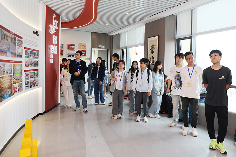 交流團一行先后參觀了綠之韻中心數(shù)智化科技展廳與黨建教育陣地。在數(shù)智化科技展廳,學(xué)生們通過沉浸式數(shù)字互動系統(tǒng),直觀感受了“水之道”文化理念與企業(yè)創(chuàng)新發(fā)展相融合的獨特魅力,深入了解了綠之韻在科研創(chuàng)新、產(chǎn)品布局、社會責任等方面的實踐成果。在黨建教育陣地,交流團詳細聽取了綠之韻以黨建引領(lǐng)企業(yè)發(fā)展的創(chuàng)新做法,特別是“三色、三有、三亮”載體和“一融合、雙培養(yǎng)、三引領(lǐng)、四堅持、五到位、六強化”工作法,給青年學(xué)生們留下了深刻印象。參觀過程中,香港大學(xué)生們對綠之韻將傳統(tǒng)文化、數(shù)字科技與黨建工作有機融合的做法表現(xiàn)出濃厚興趣,不時駐足提問、拍照記錄。一位來自香港的學(xué)生表示:“第一次來到內(nèi)地的民營企業(yè),看到企業(yè)在黨建、文化和社會責任方面做得這么系統(tǒng)、有特色,很受啟發(fā)?!?