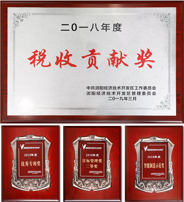 瀏陽(yáng)經(jīng)開(kāi)區(qū)黨工委副書(shū)記、管委會(huì)主任談文昌宣讀《經(jīng)開(kāi)區(qū)2018年度經(jīng)濟(jì)工作考核結(jié)果通報(bào)》,瀏陽(yáng)經(jīng)開(kāi)區(qū)黨工委委員、管委會(huì)副主任(掛職)、高新區(qū)黨工委書(shū)記喻輝宣讀《高新區(qū)2018年度經(jīng)濟(jì)工作考核結(jié)果通報(bào)》。大會(huì)對(duì)2018年度先進(jìn)企業(yè)及個(gè)人予以集中表彰。綠之韻集團(tuán)憑借過(guò)去一年取得的突出成績(jī),稅收貢獻(xiàn)位居園區(qū)前列,被國(guó)家級(jí)瀏陽(yáng)經(jīng)開(kāi)區(qū)管委會(huì)授予“2018年度稅收貢獻(xiàn)獎(jiǎng)”“2018年度目標(biāo)管理獎(jiǎng)二等獎(jiǎng)”“2018年度優(yōu)秀專利獎(jiǎng)”“2018年度智能制造示范獎(jiǎng)”等多項(xiàng)殊榮。