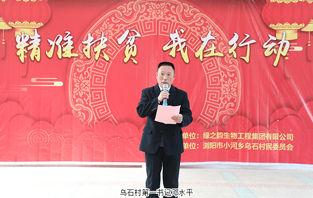 本次活動由烏石村馮騁、張娟老師共同主持?;顒右潦迹瑸跏宓谝粫涏囁街職g迎辭。他首先對綠之韻集團連續(xù)多年熱心公益、助力小河鄉(xiāng)精準扶貧的行為表示衷心的感謝。近年來,烏石村的精準扶貧工作取得了卓有成效的進步,這得益于各級黨委政府的正確領導與愛心企業(yè)的幫扶。未來,希望在大家的共同努力下,烏石村能早日脫去“貧困”的帽子,奔向幸福的小康生活。