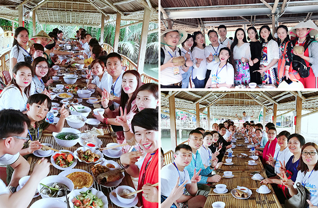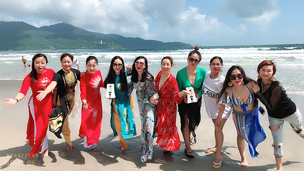 乘坐專機一抵達越南峴港,綠之韻家人們感受到了屬于峴港的熱辣風(fēng)情?!恩攘s港秀》是峴港唯一的一臺大型越南風(fēng)情文藝歌舞秀,邀請了越南著名舞蹈藝人進行演出,演出中傳遞出越南獨有的斗笠、蓮花、奧黛女子、占婆等文化元素,給家人們帶來了一場精彩紛呈的大型視覺盛宴,緩解了長途飛行的疲乏。