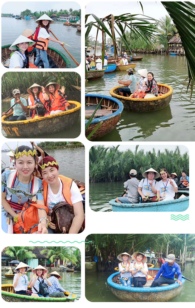 戴上一頂斗笠,坐著越南當(dāng)?shù)靥赜械聂せ?,像一尾游魚穿行在水椰林間,這場景豈止是一句愜意能盡述的。只見水椰林中還建有竹橋、垂釣亭,水中還投放了魚苗,家人們也能在此體驗一把水椰林垂釣的樂趣。最為精彩刺激的,莫過于觀看艄公的簸箕show了,綠之韻家人們坐在船上,艄公用船桿讓簸箕船在水中高速旋轉(zhuǎn)起來,船身開始上下左右的翻騰,坐在船上的家人們一個個被嚇的尖叫不已,旁邊觀看簸箕船表演的家人們則一個個拍手叫好。家人們爽朗的笑聲飄蕩在迦南島上,成為最動人的風(fēng)景配樂。