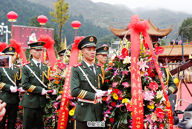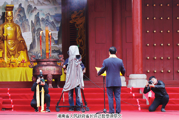 上午9時(shí)許,全場凝神肅立,氣氛莊嚴(yán),在悠揚(yáng)的古樂下,主祭人向舜祖上香及各界嘉賓依次向舜帝敬獻(xiàn)花籃 ; 全體參祭人員向舜帝深鞠三躬,虔誠致敬,深情緬懷舜帝的地德天功、浩瀚恩澤。主祭人許達(dá)哲恭讀《祭舜帝文》,頌揚(yáng)著舜帝豐功偉績,表達(dá)三湘兒女弘揚(yáng)舜帝精神,傳承中華文明,凝心聚力,砥礪奮進(jìn),為實(shí)現(xiàn)“兩個(gè)一百年”戰(zhàn)略目標(biāo),弘揚(yáng)中華優(yōu)秀傳統(tǒng)文化,建設(shè)富饒美麗幸福新湖南,譜寫中華民族偉大復(fù)興中國夢的湖南篇章而努力奮斗的雄心壯志。舜輝天下, 光照日月,讀畢祭文,許達(dá)哲將祭文帛書置于香爐中焚化,告慰舜帝英靈。禮炮、古樂再次響起,祭典儀式圓滿告成。