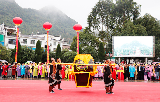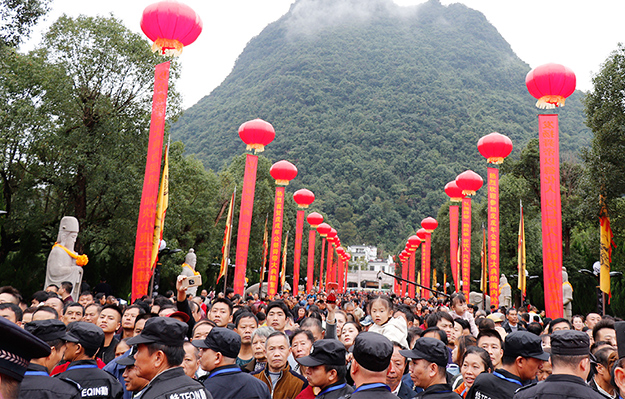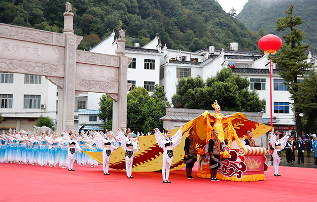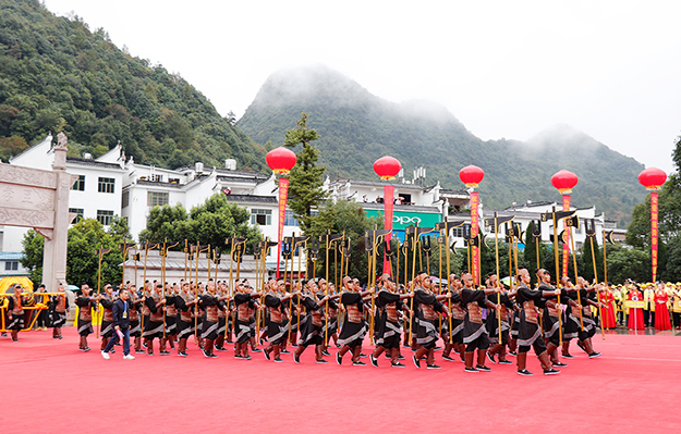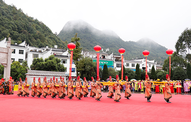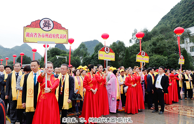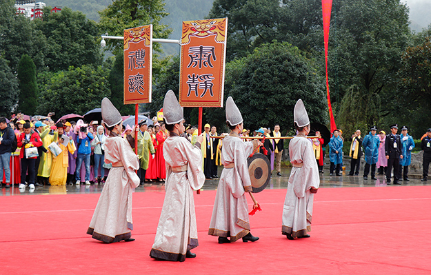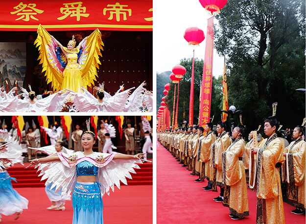 從2005年開始第一屆,2009年、2012年和2015年先后四次舉行湖南省公祭舜帝大典。三年一祭,本屆公祭舜帝大典共分為三大儀程展示。龍獅歡騰,嗩吶高奏,瑤家阿哥阿妹,唱著迎客山歌,跳著瑤族長鼓,敬獻(xiàn)瓜簞酒,百人腰鼓隊(duì)敲打著激越的鼓點(diǎn),迎接前來祭祀的賓客,儀式中無一不展現(xiàn)出寧遠(yuǎn)人熱情好客的民情風(fēng)俗。