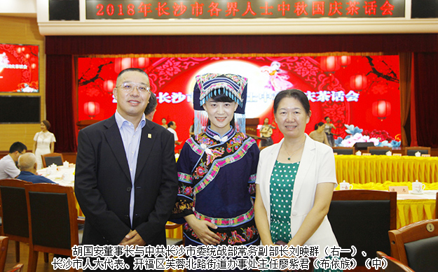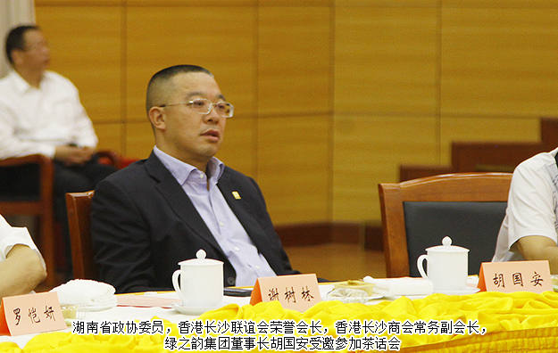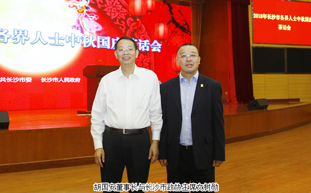2018年9月21日,長沙市各界人士中秋國慶茶話會在市委會議中心舉行。中共長沙市委副書記徐宏源,長沙市人大常委會主任程水泉,長沙市政協(xié)主席文樹勛,中共長沙市委常委、市委統(tǒng)戰(zhàn)部長譚小平等領(lǐng)導(dǎo)與全市離退休老同志、各界人士齊聚一堂,共慶佳節(jié),共話發(fā)展。湖南省政協(xié)委員,香港長沙聯(lián)誼會榮譽會長,香港長沙商會常務(wù)副會長,綠之韻集團董事長胡國安受邀參加茶話會。