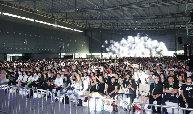 綠之韻集團(tuán)董事長胡國安先生、綠之韻集團(tuán)董事總裁勞嘉女士,綠之韻集團(tuán)副董事長高宇先生,聯(lián)袂公司高管團(tuán)隊,以及近40家媒體,攜手現(xiàn)場7000余名家人,共襄盛舉,向著明天出發(fā)!