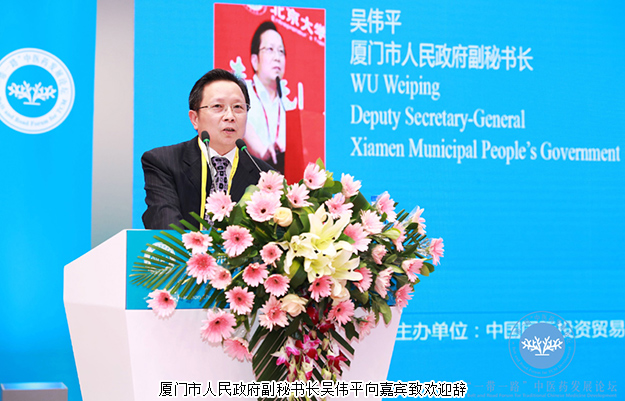 論壇開幕式上,廈門市人民政府副秘書長吳偉平向嘉賓致歡迎辭,首先,他代表廈門歡迎各位嘉賓的到來,并在致辭中提到中醫(yī)藥是我國獨特的衛(wèi)生資源,是我國大健康產(chǎn)業(yè)的重要支柱。他強調(diào),廈門市委市政府高度重視中醫(yī)藥事業(yè)發(fā)展,積極創(chuàng)造良好的營商環(huán)境,隨著國家“一帶一路”建設(shè)的深入推進,中醫(yī)藥發(fā)展也將迎來黃金時代。