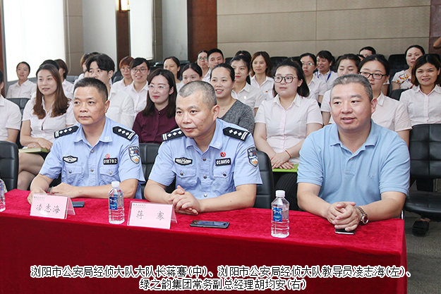 為進一步規(guī)范市場監(jiān)管,加強法律法規(guī)的宣傳力度,2018年8月1日,瀏陽市公安局“學(xué)雷鋒·見行動”法律課堂走進綠之韻集團。瀏陽市公安局經(jīng)偵大隊大隊長蔣騫、瀏陽市公安局經(jīng)偵大隊教導(dǎo)員凌志海,瀏陽市公安局網(wǎng)絡(luò)犯罪科主任彭建清,瀏陽市公安局經(jīng)偵大隊辦公室主任劉紅,綠之韻集團常務(wù)副總經(jīng)理胡均安,綠之韻集團黨委書記劉云,綠之韻集團工會主席兼集團辦公室行政總監(jiān)馮紅以及集團總部員工共同參加了此次活動。