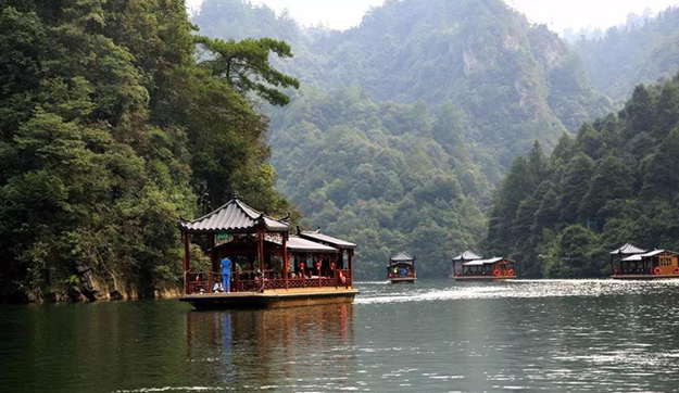 世界自然遺產(chǎn)——寶峰湖:被稱為“世界湖泊經(jīng)典”,屬?gòu)埣医绲孛矁?nèi)自然山水與人文民俗相結(jié)合的湖泊型自然風(fēng)景區(qū)。寶峰湖風(fēng)景區(qū)集山水于一體,融民俗風(fēng)情于一身,尤以奇秀的高峽平湖絕景、“飛流直下三千尺”的寶峰飛瀑、神秘的深山古寺聞名。乘船游覽,欣賞仙女照鏡、孔雀開(kāi)屏、金蟾含月等景點(diǎn),船在湖中游,綠之韻營(yíng)銷精英與土家阿哥、阿妹對(duì)唱山歌。