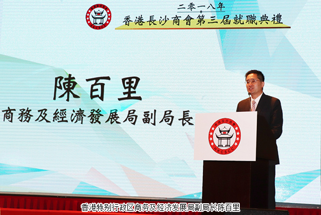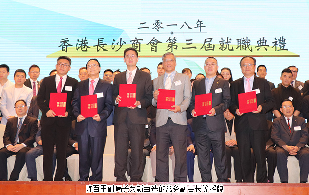 就職典禮上,香港特別行政區(qū)商務(wù)及經(jīng)濟發(fā)展局副局長陳百里為新當(dāng)選的常務(wù)副會長等授牌并帶領(lǐng)宣誓,現(xiàn)任全體執(zhí)行會長、常務(wù)副會長、副會長舉行了宣誓儀式,在國旗前莊嚴(yán)宣讀了任職誓詞。馬介欽會長表示,香港長沙商會自2012年成立至今已近6年,現(xiàn)有名譽會長、會長、執(zhí)行會長、副會長、會董共約200多人,成員包括多位全國政協(xié)委員,人大代表,香港在長沙、湖南重大投資企業(yè)代表及多位長沙、湖南籍貫內(nèi)地知名企業(yè)家。商會一直和香港政府、貿(mào)發(fā)局、各大商會、外國駐港、駐國內(nèi)地方領(lǐng)事有良好關(guān)系,并擴闊了香港和長沙、湖南兩地企業(yè)家之交流和合作機遇,先后協(xié)調(diào)香港多個商會和企業(yè)家等到訪長沙及湖南其他各地。商會將始終以關(guān)心長沙經(jīng)濟社會建設(shè),關(guān)注長沙發(fā)展商機;建立已在或有意在湖南投資興業(yè)的香港工、商界人士的園地;搭建溝通長沙與香港兩地經(jīng)貿(mào)交流合作的暢通橋梁;建立長沙與香港兩地企業(yè)家、社會精英的交流、聯(lián)誼平臺;在海外推介長沙、宣傳及協(xié)助長沙招商引資工作為商會宗旨,為香港長沙兩地經(jīng)濟的發(fā)展創(chuàng)造更多的機遇與更好的平臺。