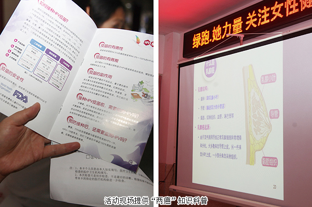 科普“兩癌”預(yù)防知識(shí),傳播健康生活理念。為了加強(qiáng)廣大女性對(duì)“兩癌”的認(rèn)識(shí)及防治意識(shí),在益陽(yáng)資陽(yáng)區(qū)婦幼保健院,活動(dòng)組委會(huì)特別邀請(qǐng)了婦科專家醫(yī)師給當(dāng)?shù)剡m齡女性講解“兩癌”的相關(guān)知識(shí)與防治。專家醫(yī)師重點(diǎn)講述了“兩癌”的主要表現(xiàn)和一些日常預(yù)防措施和自我檢查方法,并根據(jù)臨床遇到的實(shí)際案例,生動(dòng)地告訴到場(chǎng)女性什么是“兩癌”,如何預(yù)防“兩癌”以及“兩癌”檢查的重要性。同時(shí),就大家關(guān)心的宮頸癌疫苗問(wèn)題如宮頸癌疫苗的接種時(shí)機(jī)、接種年齡、接種疫苗后是否還要進(jìn)行宮頸癌檢查做了詳細(xì)的講解。從益陽(yáng)市各個(gè)社區(qū)趕來(lái)的婦女群眾們,手持免費(fèi)檢查卡,右手腕上佩戴著為本次活動(dòng)特別設(shè)計(jì)的、象征著“愛與健康”的紅綠色絲帶,臉上洋溢著燦爛的笑容,井然有序地排著隊(duì)進(jìn)入診室進(jìn)行檢查。幾位剛剛從診室里出來(lái),做完檢查的女性群眾笑著說(shuō)道:“醫(yī)生剛說(shuō)啦,我身體好著呢,啥問(wèn)題都沒有!”“以前如果我們要去醫(yī)院做檢查,既要預(yù)約又要花錢,很不方便?,F(xiàn)在可好了,不僅能夠免費(fèi)檢查,還可以了解到很多健康知識(shí)。這是真正將實(shí)惠送到老百姓手上的大好事,真的太謝謝你們了!”