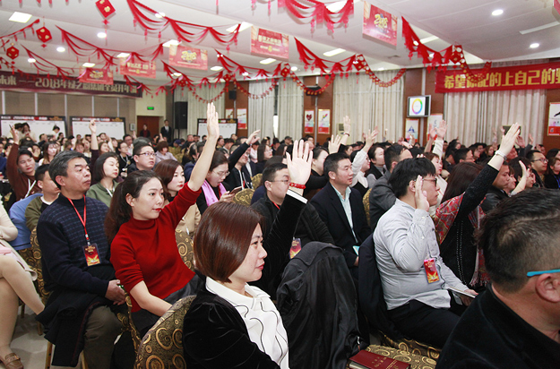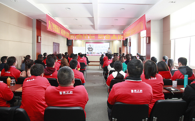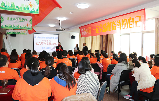 開班儀式上,綠之韻集團董事、總裁勞嘉發(fā)表培訓動員講話。她首先代表集團公司對受邀前來授課的行業(yè)專家、職場培訓大師表示熱烈的歡迎和衷心的感謝,并向全體參訓學員們致以誠摯的問候和新年的祝福。十五年來,綠之韻集團在胡國安董事長的引領下,積極打造學習型企業(yè)和最具幸福感企業(yè)。從2014年至今,新春全員開年訓已經(jīng)持續(xù)開展了五個年頭,今年的開年訓是企業(yè)發(fā)展史上規(guī)模最大、人數(shù)最多、涉及下屬企業(yè)最多的一次,是集團送給每一位綠之韻人的2018新年禮物。17個下屬企業(yè)機構(gòu)、300多名家人聚在一起,從專業(yè)培訓,到實戰(zhàn)演練、再到團隊合作,這份豐盛的精神大餐,必將激發(fā)起綠之韻人的學習激情和逐夢力量。她希望,所有參訓員工以“歸零”的心態(tài)投入學習,拿出最充沛的精力和最飽滿的熱情,全身心融入到開年訓的氛圍中,將所學、所思、所感運用到以后的工作和生活;牢記企業(yè)發(fā)展使命,緊跟新時代發(fā)展步伐,充分發(fā)揚精耕細作的“工匠精神”,只爭朝夕,鍥而不舍,在新的一年里共同贏戰(zhàn)2018,鑄就新的事業(yè)輝煌。