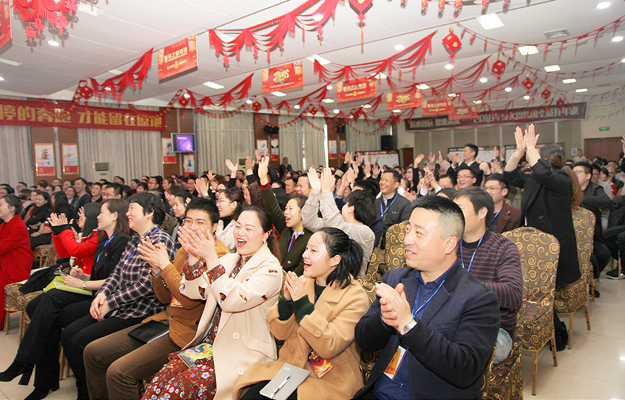 “新時代是奮斗者的時代。只有奮斗的人生才稱得上幸福的人生?!睘榱嗽鰪娙w員工的團隊戰(zhàn)斗力和凝聚力,進一步激發(fā)員工與時俱進、不斷學習、創(chuàng)新引領、追求卓越的精神面貌,積極將打造學習型企業(yè)深度融入到行業(yè)發(fā)展、時代趨勢和國家戰(zhàn)略,2018年2月23—24日“匠心致遠、思變未來”——2018年綠之韻集團全員新春開年訓在集團總部成功舉行。綠之韻集團董事長胡國安、董事總裁勞嘉攜公司高管團隊參加本次培訓活動,來自集團總部、各分公司、綠之韻生態(tài)紡織、綠之韻低碳、綠韻匯成、保健日用品、瀏陽綠之韻國際大酒店、湘潭綠之韻國際大酒店、投資與房地產(chǎn)公司等下屬企業(yè)、機構(gòu)共計300多名綠之韻家人,熱情高漲地參加了此次課程內(nèi)容豐富、形式精彩紛呈的新春第一訓。