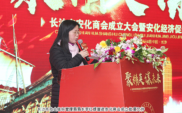 會(huì)議伊始,長(zhǎng)沙市社會(huì)組織管理局局長(zhǎng)李紅輝宣讀《長(zhǎng)沙市民政局關(guān)于同意成立長(zhǎng)沙市安化商會(huì)的行政許可決定》。安化經(jīng)濟(jì)促進(jìn)會(huì)長(zhǎng)沙分會(huì)理事長(zhǎng)李蒲初致歡迎辭并作工作報(bào)告。他表示,長(zhǎng)沙市安化商會(huì)的成立是全體安化籍企業(yè)家的一件大喜事,是搭建精誠(chéng)合作、抱團(tuán)發(fā)展,實(shí)現(xiàn)行業(yè)、區(qū)域大融合,增強(qiáng)在長(zhǎng)安化老鄉(xiāng)凝聚力和向心力的平臺(tái)。未來(lái),長(zhǎng)沙市安化商會(huì)將為長(zhǎng)沙的安化企業(yè)家構(gòu)建一個(gè)互幫互助、交流合作的平臺(tái),為安化企業(yè)家在企業(yè)和政府之間建立一個(gè)橋梁和紐帶,發(fā)揮平臺(tái)優(yōu)勢(shì),更好地服務(wù)企業(yè)、服務(wù)會(huì)員。原省公安廳黨委副書記、常務(wù)副廳長(zhǎng)胡旭曦,原北京市公安局現(xiàn)役辦主任諶再來(lái),原湖南省糧食局局長(zhǎng)、黨組書記夏文星,原湖南省行業(yè)辦主任、黨組書記夏純玉等擔(dān)任商會(huì)顧問(wèn)。