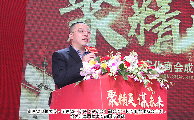 會(huì)上,湖南省政協(xié)委員、湖南省工商聯(lián)(總商會(huì))副會(huì)長(zhǎng)、長(zhǎng)沙市安化商會(huì)會(huì)長(zhǎng)、綠之韻集團(tuán)董事長(zhǎng)胡國(guó)安發(fā)表致辭。他首先向一直以來(lái)為長(zhǎng)沙市安化商會(huì)的籌備付出了努力與貢獻(xiàn)的企業(yè)和人士致以最衷心的感謝。他表示,2018年商會(huì)將圍繞創(chuàng)建“團(tuán)結(jié)型商會(huì)、服務(wù)型商會(huì)、創(chuàng)新型商會(huì)、學(xué)習(xí)型商會(huì)、奉獻(xiàn)型商會(huì)”的發(fā)展目標(biāo),打造“道相同,利相共,心相通”的商會(huì)文化,不斷推進(jìn)商會(huì)各項(xiàng)工作邁上新臺(tái)階;積極為長(zhǎng)沙、安化兩地政府和廣大會(huì)員交流合作搭建發(fā)展平臺(tái);致力于長(zhǎng)沙、安化兩地精準(zhǔn)扶貧等社會(huì)公益慈善事業(yè);廣泛參與家鄉(xiāng)回歸工程,在促進(jìn)長(zhǎng)沙、安化兩地經(jīng)貿(mào)交流過(guò)程中發(fā)揮好橋梁紐帶作用,回饋社會(huì)、回報(bào)桑梓。同時(shí),商會(huì)將努力為會(huì)員企業(yè)做好服務(wù),促進(jìn)會(huì)員企業(yè)抱團(tuán)合作;繼續(xù)發(fā)展會(huì)員隊(duì)伍,繼續(xù)抓好班子建設(shè)和學(xué)習(xí)培訓(xùn)工作,抓好商會(huì)宣傳工作,堅(jiān)定信心,穩(wěn)重求進(jìn)。他相信,未來(lái)在各級(jí)領(lǐng)導(dǎo)的正確指導(dǎo)下,在商會(huì)領(lǐng)導(dǎo)班子的共同努力下,在所有商會(huì)會(huì)員企業(yè)的互幫互助下,他將帶領(lǐng)新一屆領(lǐng)導(dǎo)班子堅(jiān)持聯(lián)系企業(yè),服務(wù)會(huì)員,促進(jìn)友好交往,互通商務(wù)信息,加強(qiáng)多方交流,形成協(xié)作機(jī)制,共謀發(fā)展之路,努力把商會(huì)打造成為有中國(guó)特色、長(zhǎng)沙特征、安化特點(diǎn)的知名商會(huì)品牌。