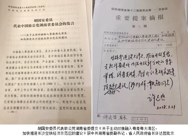本次大會(huì)聽取并審議了十一屆省政協(xié)副主席賴明勇代表十一屆省政協(xié)常委會(huì)作的《政協(xié)湖南省第十一屆委員會(huì)常務(wù)委員會(huì)關(guān)于五年來提案工作情況的報(bào)告》,會(huì)后分組進(jìn)行了審議討論。此次大會(huì),胡國(guó)安委員向湖南省政協(xié)十二屆一次會(huì)議提交了《關(guān)于新時(shí)代下民營(yíng)企業(yè)家全面弘揚(yáng)踐行企業(yè)家精神的建議》和《關(guān)于推行“醫(yī)養(yǎng)護(hù)一體化”健康養(yǎng)老模式的建議》兩件個(gè)人提案,代表致公黨湖南省委提交《關(guān)于主動(dòng)對(duì)接融入粵港粵大灣區(qū),加快推進(jìn)長(zhǎng)沙空鐵經(jīng)濟(jì)示范區(qū)的建議》一件集體提案。其中,提案《關(guān)于推行“醫(yī)養(yǎng)護(hù)一體化”健康養(yǎng)老模式的幾點(diǎn)建議》內(nèi)容緊扣當(dāng)前社會(huì)熱點(diǎn),重點(diǎn)關(guān)注民生養(yǎng)老問題,對(duì)當(dāng)前養(yǎng)老形勢(shì)分析深刻,建議務(wù)實(shí),發(fā)人深思,受到廣大媒體、與會(huì)委員以及社會(huì)大眾的強(qiáng)烈關(guān)注。提案《關(guān)于主動(dòng)對(duì)接融入粵港粵大灣區(qū),加快推進(jìn)長(zhǎng)沙空鐵經(jīng)濟(jì)示范區(qū)的建議》(代表致公黨湖南省委),獲湖南省人民政府省長(zhǎng)許達(dá)哲重要批示。胡國(guó)安董事長(zhǎng)表示,“粵港澳大灣區(qū)”作為超級(jí)“夢(mèng)之灣”,是黨中央、國(guó)務(wù)院立足國(guó)內(nèi)外發(fā)展新形勢(shì)新要求做出的重大戰(zhàn)略部署,是湖南長(zhǎng)沙努力“創(chuàng)建國(guó)家中心城市,實(shí)現(xiàn)基本現(xiàn)代化”戰(zhàn)略目標(biāo)的重大機(jī)遇。綠之韻集團(tuán)作為一家具有濃郁的湖湘情結(jié)和強(qiáng)烈的做大做強(qiáng)發(fā)展意愿的湖湘本土企業(yè),將搶抓機(jī)遇,順勢(shì)發(fā)力,逐步在生物制藥、醫(yī)療養(yǎng)老、中醫(yī)養(yǎng)生、國(guó)醫(yī)館、連鎖酒店、健康管理等板塊同粵港澳大灣區(qū)進(jìn)行有效產(chǎn)業(yè)對(duì)接,積極推進(jìn)區(qū)域協(xié)調(diào)發(fā)展戰(zhàn)略,努力為湘粵港澳經(jīng)濟(jì)發(fā)展貢獻(xiàn)力量!