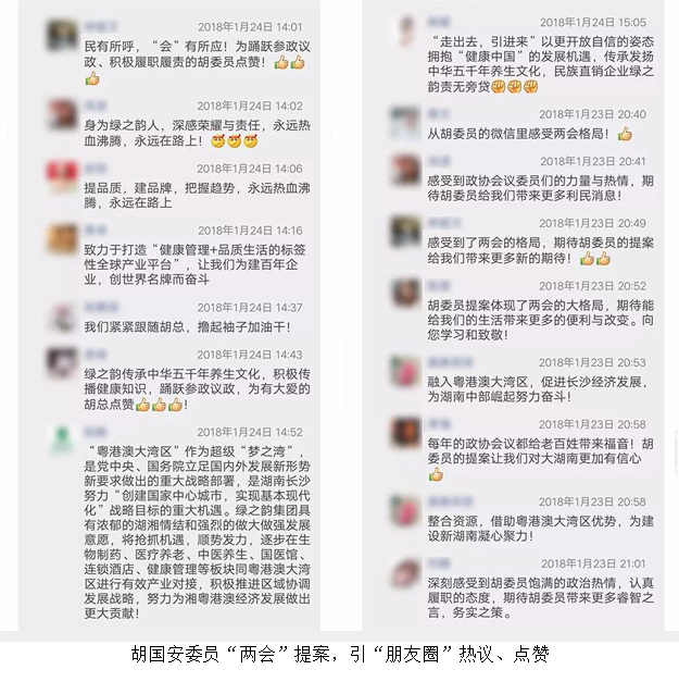 會(huì)議結(jié)束后,胡國(guó)安委員仍然沉浸在三天前聆聽政府工作報(bào)告的激動(dòng)和振奮之中。他表示,政府工作報(bào)告中“提品質(zhì)、建品牌、大力發(fā)展實(shí)體經(jīng)濟(jì)”等內(nèi)容振奮人心,給我們民營(yíng)企業(yè)家們又打了一劑“強(qiáng)心針”。綠之韻集團(tuán)將認(rèn)真貫徹落實(shí)湖南“兩會(huì)”精神指示,結(jié)合省市《關(guān)于支持非公有制經(jīng)濟(jì)健康發(fā)展的十條意見》《建設(shè)國(guó)家智能制造中心(2017-2019)三年行動(dòng)計(jì)劃》《長(zhǎng)沙市人民政府關(guān)于發(fā)展資本市場(chǎng)的若干意見》以及“長(zhǎng)沙工業(yè)30條”“人才新政20條”等多項(xiàng)促進(jìn)民營(yíng)經(jīng)濟(jì)發(fā)展、鼓勵(lì)扶持民營(yíng)企業(yè)上市的利好政策,搶抓機(jī)遇,奮發(fā)有為,充分發(fā)揮綠色大健康全產(chǎn)業(yè)鏈優(yōu)勢(shì),助力中醫(yī)藥產(chǎn)業(yè)、健康中國(guó)和湖南“一帶一部”戰(zhàn)略發(fā)展;堅(jiān)持以研發(fā)具備核心競(jìng)爭(zhēng)力產(chǎn)品為發(fā)展方向,加大研發(fā)經(jīng)費(fèi)投入,加強(qiáng)與湖南中醫(yī)藥大學(xué)、湖南農(nóng)業(yè)大學(xué)、南方醫(yī)科大學(xué)的產(chǎn)學(xué)研深度合作,增強(qiáng)企業(yè)軟硬件體系建設(shè),逐步布局生物制藥、健康干預(yù)、健康體檢、健康養(yǎng)老、連鎖酒店、國(guó)醫(yī)堂、中醫(yī)養(yǎng)生等多元產(chǎn)業(yè)領(lǐng)域;積極響應(yīng)國(guó)家“鼓勵(lì)和支持民營(yíng)企業(yè)結(jié)合金融資本上市”的號(hào)召,培養(yǎng)專業(yè)金融管理團(tuán)隊(duì),構(gòu)建健康產(chǎn)業(yè)下的大金融產(chǎn)業(yè)布局體系,打造“雙百億”工程。圍繞“雙百億”工程,未來5年,綠之韻集團(tuán)將不斷推進(jìn)優(yōu)質(zhì)資源向集團(tuán)公司擬上市子產(chǎn)業(yè)板塊集中,全力打造3—5家美國(guó)、中國(guó)香港上市公司,提升集團(tuán)公司整體盈利水平和國(guó)際市場(chǎng)競(jìng)爭(zhēng)力,為湖南省經(jīng)濟(jì)社會(huì)跨越式發(fā)展再立新功。