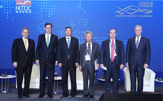 會議伊始,香港貿(mào)易發(fā)展局主席羅康瑞致歡迎辭。羅康瑞表示,香港地區(qū)目前處于新的經(jīng)濟發(fā)展節(jié)點,外貿(mào)以及經(jīng)濟的增長勢頭仍會保持,但仍需對面臨的挑戰(zhàn)和風(fēng)險保持警惕。特別是在金融收緊和在風(fēng)險控管方面,部分措施將有待出臺,這有助于進一步疏解香港經(jīng)濟遇到的困難。對于香港的可持續(xù)發(fā)展問題,他表示投資和創(chuàng)新可以驅(qū)動經(jīng)濟的長期復(fù)蘇。而作為全球經(jīng)濟發(fā)展驅(qū)動器的“一帶一路”倡議同樣不可忽視。香港作為世界一流的金融中心城市之一,是內(nèi)地和國際之間重要的連接器,也是“一帶一路”重要的實施者和參與者。