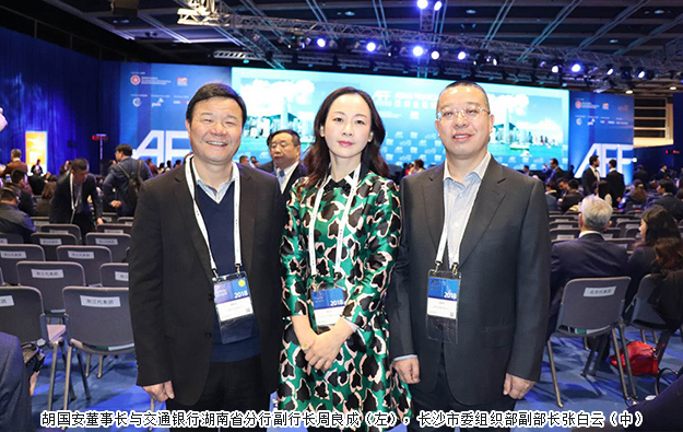 2018年1月15—16日,由香港特別行政區(qū)政府及香港貿(mào)易發(fā)展局共同主辦的“2018亞洲金融論壇”在香港會議展覽中心舉行。中華人民共和國香港特別行政區(qū)行政長官林鄭月娥,香港貿(mào)易發(fā)展局主席羅康瑞,中國證券監(jiān)督管理委員會副主席姜洋;俄羅斯第一副總理舒瓦洛夫,美國第76任財政部長杰克盧,國際貨幣基金組織第一副總裁大衛(wèi)?利普頓,亞洲開發(fā)銀行行長中尾武彥,盧森堡財政部長皮埃爾·格拉美亞,亞洲基礎(chǔ)設(shè)施投資銀行行長、董事會主席金立群,匯豐控股有限公司集團行政總裁歐智華等100多位來自全球各地的財金官員、經(jīng)濟學(xué)家、跨國企業(yè)管理層和財金專家出席會議。中共長沙市委常委、副市長付勝華,長沙市委組織部副部長張白云,長沙市政府金融辦主任李曉斌等攜長沙市金融代表團參加會議。湖南省工商聯(lián)(總商會)副會長、香港湘都同鄉(xiāng)會名譽會長、香港長沙商會副會長、綠之韻集團董事長、綠韻控股集團董事局主席胡國安受邀參加會議。