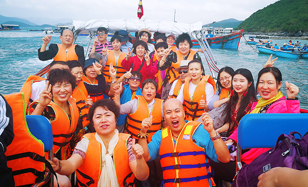 綠之韻營銷精英越南榮耀之旅的重頭戲便是出海,黑島、竹島、蠶島、海燕島,每一個(gè)島都有它的獨(dú)特韻味,冒著黑煙的古老木船從碼頭開往不同的島嶼。在島嶼上享用美食,享受海浪沙灘,海水的顏色從孔雀藍(lán)過度到深藍(lán),大朵大朵潔白的云,陽光灑向海面,每一幀剪影都是一幅風(fēng)景畫。